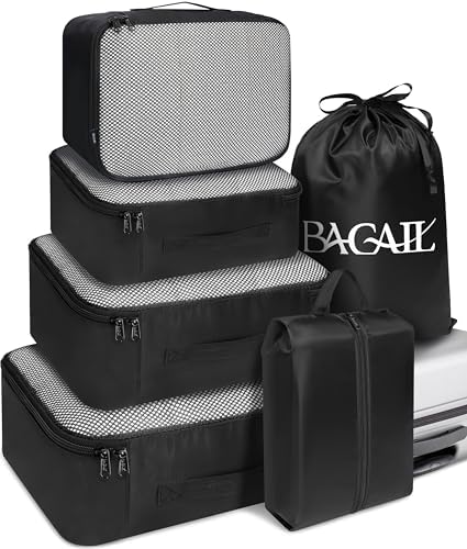 BAGAIL 6 Set Packing Cubes Luggage Packing Organizers for Travel Accessories (Black)