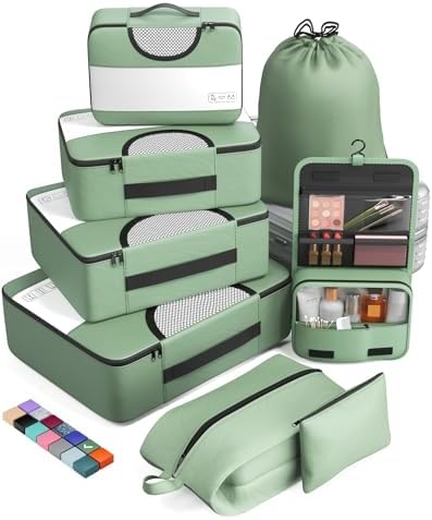 Veken 8 Set Packing Cubes for Travel Essentials, Suitcase Organizer Bags in 4 Sizes, Carry-On Luggage Accessories with Large Laundry & Hanging Toiletry Bag, Must-Have for Airplane, Road Trip & Camping