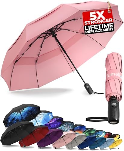 TUMELLA Strongest Windproof Travel Umbrella (Compact, Superior & Beautiful), Small Strong but Light Portable and Automatic Folding Rain Umbrella, Durable Premium Grip, Fits Car & Backpack