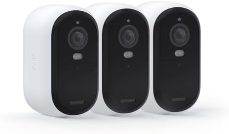 Arlo Essential Security Wireless 2K Camera with Spotlight, Indoor/Outdoor, 2nd Gen, 2-Way Audio, Color Night Vision, Motion Activation, Real Time Notifications, White, VMC3350, 3-Pack (Renewed)