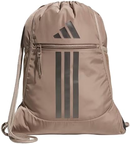 adidas Alliance Sackpack, Drawstring Backpack, Lightweight Small Gym Bag for Women and Men, Chalky Brown/Gunmetal, One Size