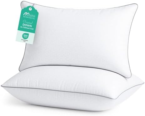 Sasttie Pillows Queen Size Set of 2, Bed Pillows for Side, Back, and Stomach Sleepers - Oeko-Tex Certified Down Alternative Plump Filling - Hotel Quality and Machine Washable, 2 Pack