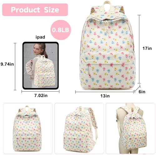 School Backpack for Teen Girls Bookbags Elementary High School Corduroy Laptop Bags Women Travel Daypacks