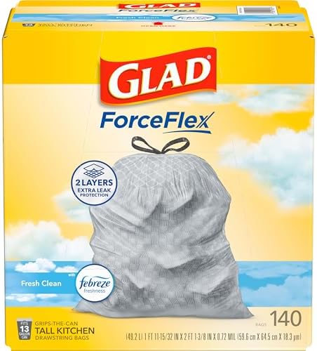 Glad ForceFlex Tall Kitchen Trash Bags, 13 Gallon, Fresh Clean, 140 Count (Package May Vary)