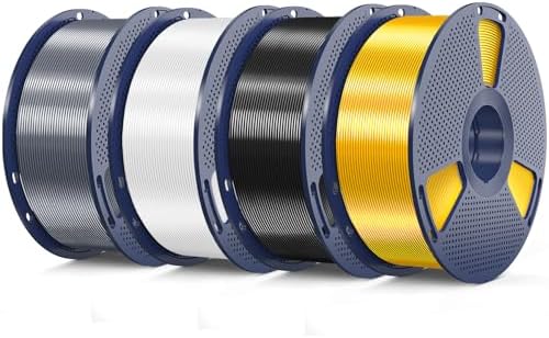 3D Printer Silk Filament, SUNLU Shiny Silk PLA Filament 1.75mm, Smooth Silky Surface, Great Easy to Print for 3D Printers, Dimensional Accuracy +/- 0.02mm, Silk Light Gold+Black+White+Grey, Total 4KG