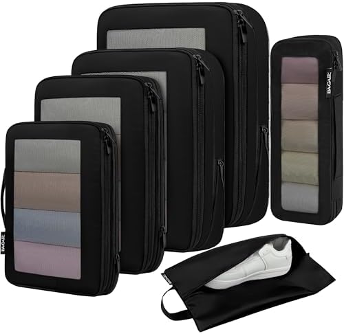 BAGAIL 4 Set/6 Set/8 Set Compression Packing Cubes Travel Accessories Expandable Packing Organizers (Square Mesh, 05-Black)