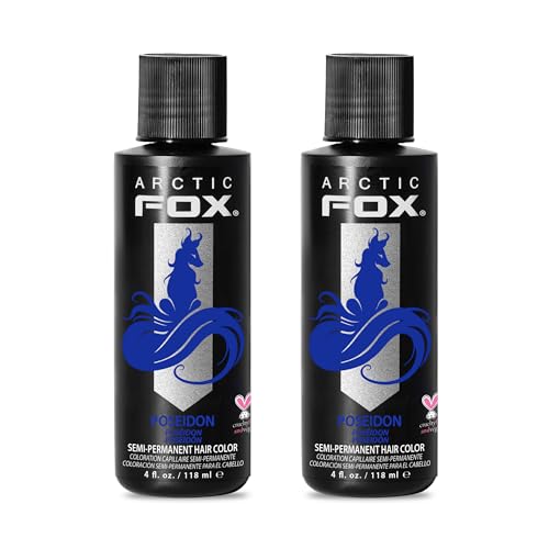 Arctic Fox Semi-Permanent Hair Dye, Vegan & Cruelty-Free, Vibrant Blue Color, Ammonia-Free, Peroxide-Free, Conditioning Formula, Poseidon, 4 Fl Oz (Pack of 2)
