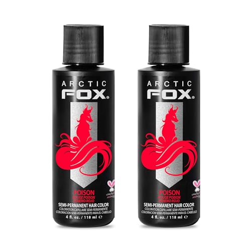 Arctic Fox Semi-Permanent Hair Dye, Vegan & Cruelty-Free, Vibrant Red Color, Ammonia-Free, Peroxide-Free, Conditioning Formula, For All Hair Types, Poison, 4 fl oz (Pack of 2)
