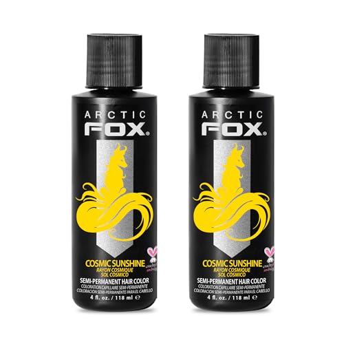 Arctic Fox Semi-Permanent Hair Dye, Vegan & Cruelty-Free, Vibrant Yellow Color, Ammonia-Free, Peroxide-Free, Conditioning Formula, For All Hair Types, Cosmic Sunshine, 4 Fl Oz (Pack of 2)