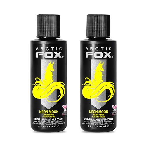 Arctic Fox Semi-Permanent Hair Dye, Neon Moon UV Reactive, Vegan & Cruelty-Free, Vibrant Neon Yellow, Ammonia-Free, Conditioning Formula, For All Hair Types, 4 Fl Oz (Pack of 2)