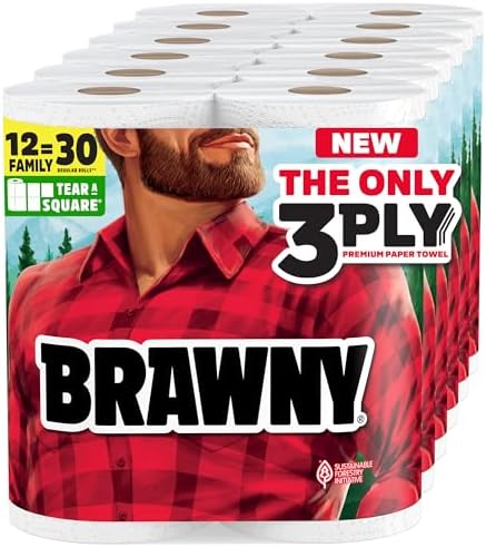 - UNMATCHED STRENGTH AND ABSORBENCY: Tackle tough spills and messes with the new Brawny 3-Ply paper towel; the only nationally branded retail paper towel roll with three plies; providing superior strength, absorbency, and durability