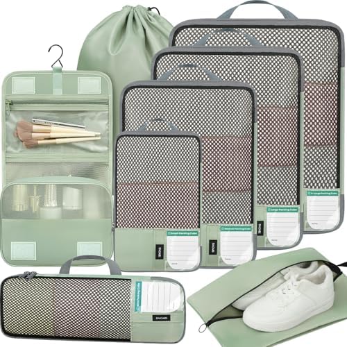 BAGAIL 4 Set/6 Set/8 Set Compression Packing Cubes Travel Accessories Expandable Packing Organizers(HalfMesh, 8-MatchaGreen)
