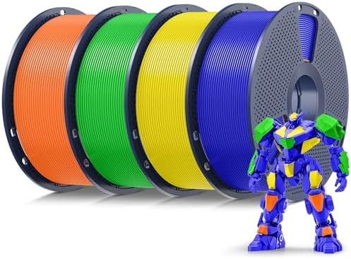 SUNLU 4kg PLA 3D Printer Filament Bundle Multicolor, Neatly Wound PLA Filament 1.75mm ±0.02mm, Individually Vacuum Packed, 4kg in Total, 1kg per Spool, 4 Pack, Sunny Orange+Yellow+Green+Klein Blue