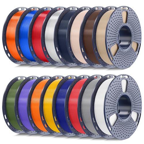 250g PETG Filament 1.75mm Bundle, 250g Spool,16 Rolls, White+Grey+Red+Blue+Yellow+Orange+Purple+OliveGreen+Oak+CoffeeBrown+Midnight+Clear+Transparent Red+Transparent Blue+Transparent Orange