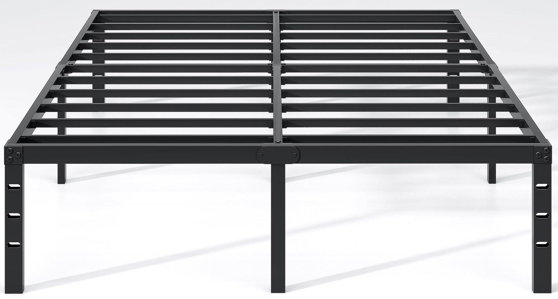 NEW JETO Metal Bed Frame,Queen Size Bed Frame with Storage Space,Heavy Duty Sturdy Mattress Foundation,Easy Assembly,No Box Spring Needed, Black,18 Inch,Queen