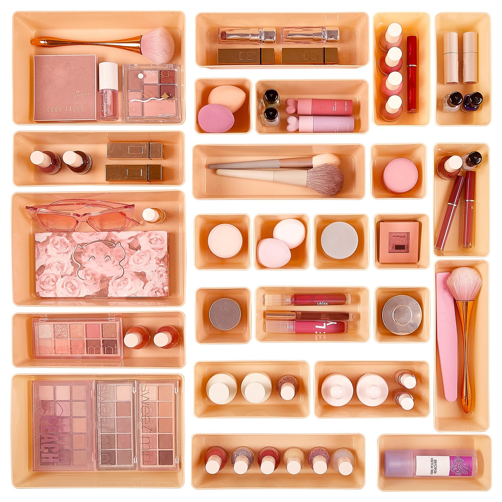 Vtopmart 25 PCS Plastic Drawer Organizers Set, 4-Size Versatile Bathroom and Vanity Drawer Organizer Trays, Storage Bins for Makeup, Bedroom, Kitchen Gadgets Utensils and Office